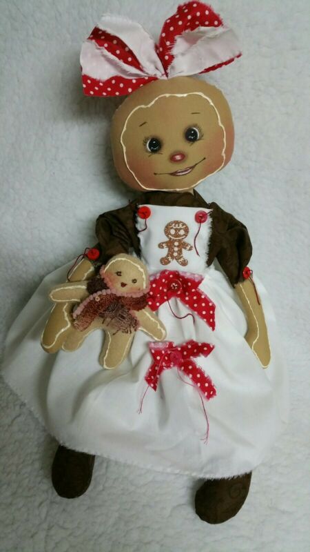 Primitive folk art raggedy Gingerbread doll puffy icing /16"/swivel head