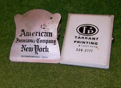 2 Vintage Metal Clips with Advertising