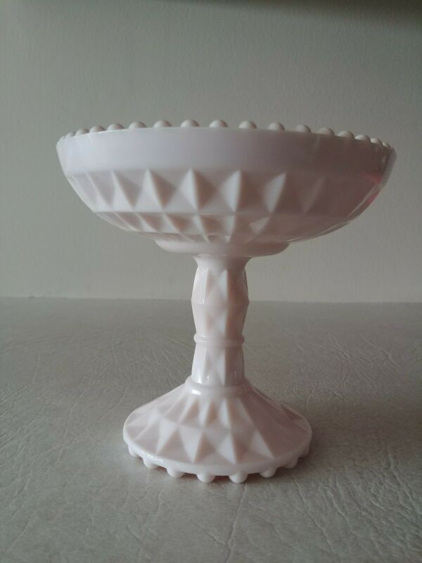 Title (ebay affiliate link): Vintage Jeanette Shell Pink Milk Glass Windsor Compote Pedestal Bowl Beaded Edge