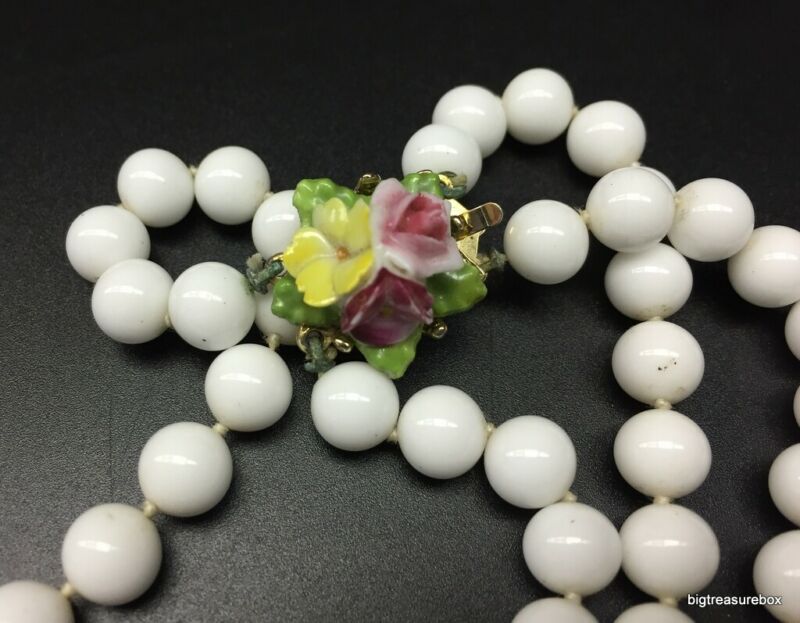 Title (ebay affiliate link): Vintage Necklace White Milk Glass Bead Porcelain Flower Jewelry lot i
