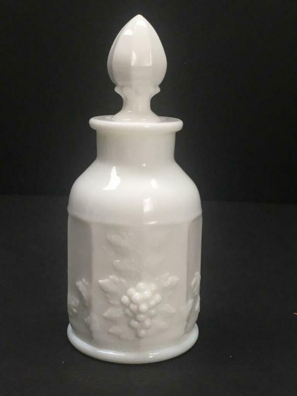 Title (ebay affiliate link): Beautiful Vtg Westmoreland 6.5" Perfume Vanity Bottle Paneled Milk Glass Grapes
