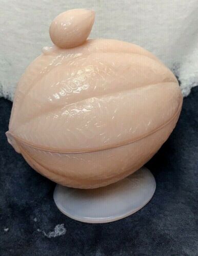 Title (ebay affiliate link): Vintage PINK MILK GLASS ALMOND Lidded Candy / NUTS Dish UNIQUE COLLECTABLE