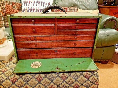 Title (ebay affiliate link): Vtg.Metal Case & Oak Drawers MACHINIST Carry Tool Chest/Box w/Key American Flag