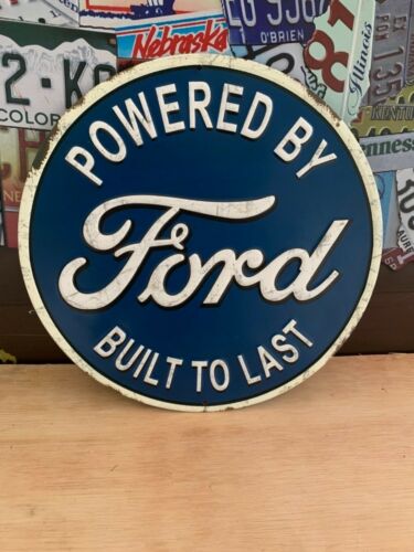 FORD POWER HEAVY EMBOSSED METAL SIGNN,CAR TRUCK SALES DEALER SHOP GARAGE NICE