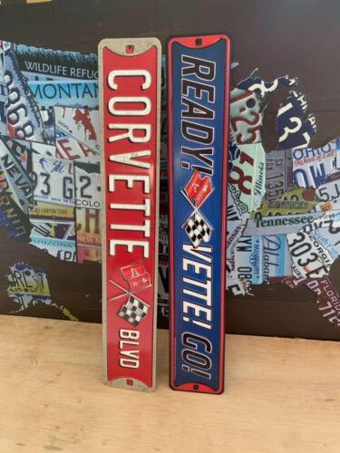 Title (ebay affiliate link): LARGE SET OF 2 CHEVROLET CORVETTE HEAVY EMBOSSED METAL SIGNN SALES DEALER SHOP