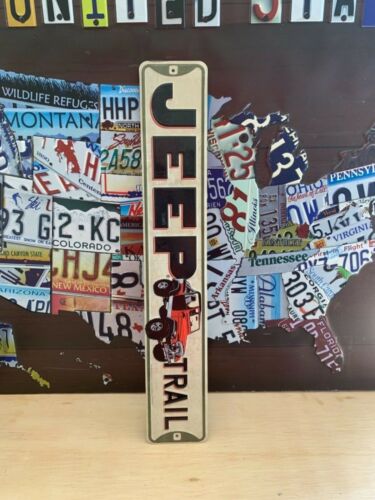LARGE JEEP TRAIL EMBOSSED METAL JEEP DODGE CAR TRUCK DEALER SHOP SIGNN