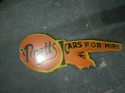 Porcelain Pratts Car For Hire Enamel Sign Size 10" x 4" Inches