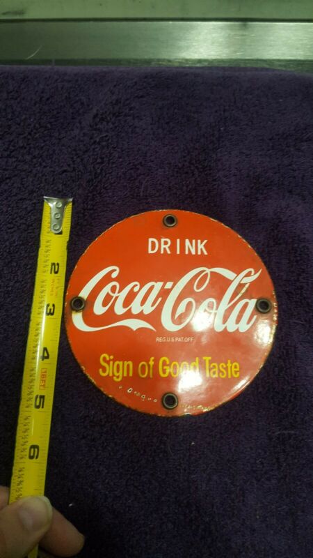 Title (ebay affiliate link): OLD USED DRINK COCA-COLA PORCELAIN DOOR ROUND SIGN "SIGN OF GOOD TASTE"