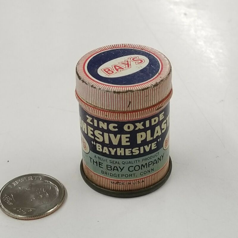 Title (ebay affiliate link): VINTAGE BAY''S ZINC OXIDE ADHESIVES MEDICINE TIN BRIDGEPORT CONN.