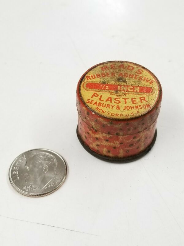 Title (ebay affiliate link): VINTAGE MEAD''S RUBBER ADHESIVE PLASTER SEABURY & JOHNSON MEDICINE TIN