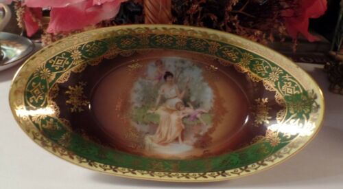 Cico Bavaria Germany Oval Dish Woman with Cherub Gold Trimmed Antique