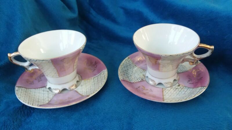 Vintage Ornate Royal Sealy Pink Gold Tea Cup & Saucer Set