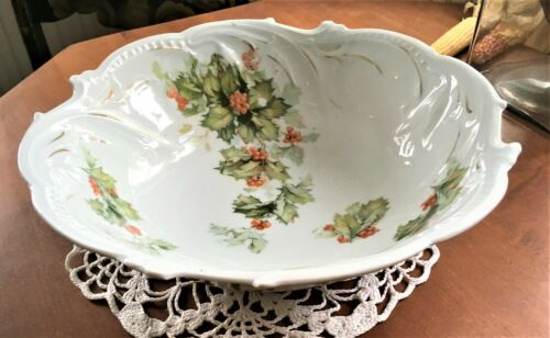 Start - $9.99 3-4 14148 Antique German Holly Berries Porcelain Center Piece Bowl