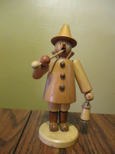 VINTAGE German Incense Burner Hand Carved Wood Man With Lamp