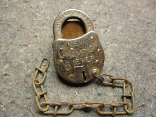 Title (ebay affiliate link): VINTAGE PADLOCK/NEW CHAMPION 6 LEVER, MILLER LOCK CO./HAS CHAIN/STEEL/NO KEY