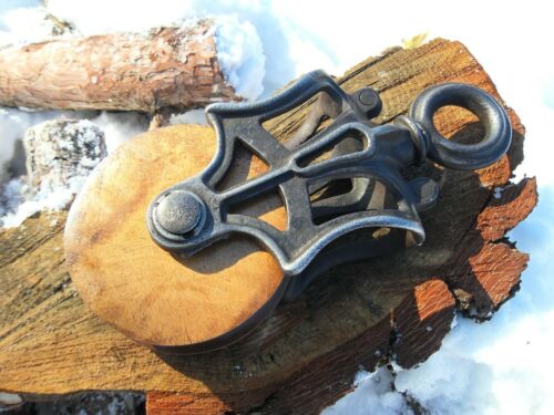 Title (ebay affiliate link): Antique VINTAGE CAST Iron/ WOOD PULLEY PRIMITIVE FARM TOOL ORNATE RUSTIC DECOR