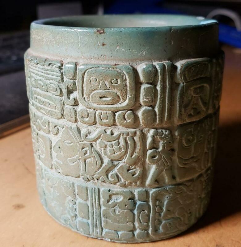 Title (ebay affiliate link): Pre Columbian Style Maya Glyph Blue Ceramic Cup STUNNING Glyphs