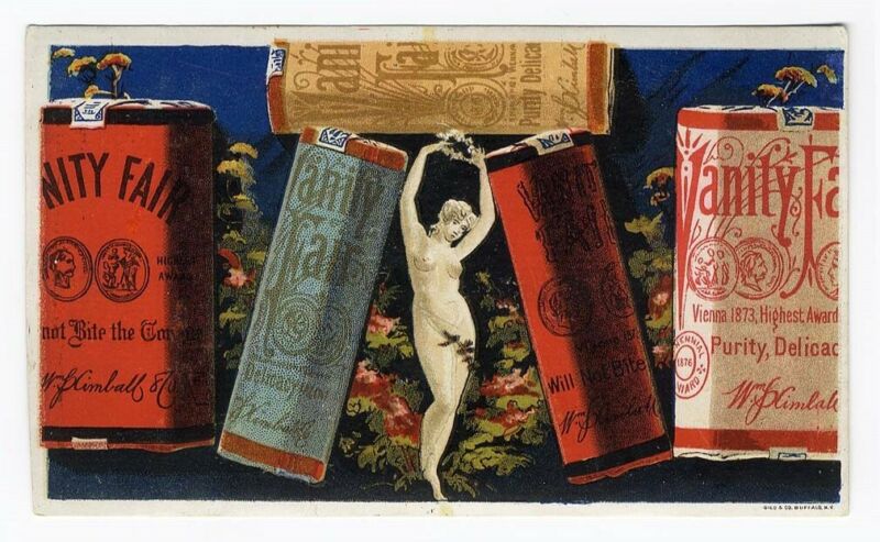 Title (ebay affiliate link): VANITY FAIR CIGARETTE Trade Card 1880s Victorian Shows Packaging TOBACCO Kimball