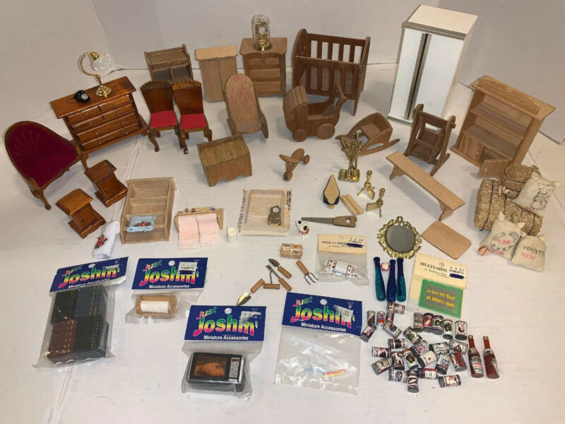Title (ebay affiliate link): VTG Miniature Wood Wooden Doll House Furniture Lot Chairs Dresser Accessories