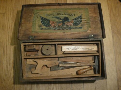 Title (ebay affiliate link): C. 1900 Antique: "The Standard Boys Tool Chest". No. 380. w/Tools. Original.