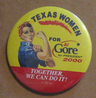 Al Gore campaign button pin Texas Rosie the Riveter