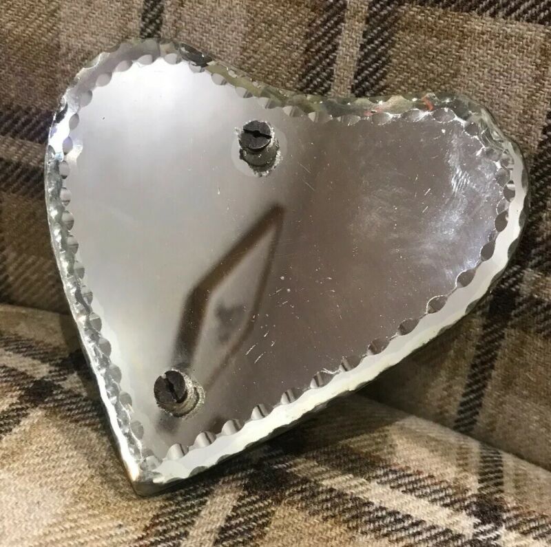 Title (ebay affiliate link): Lovely VINTAGE 1930s HEART-SHAPED Pie Crust Edge Make-Up Free-Standing MIRROR