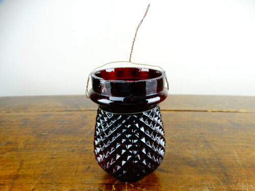 Antique Victorian Cranberry Glass Fairy Light Candle Lantern Lamp Christmas Xmas