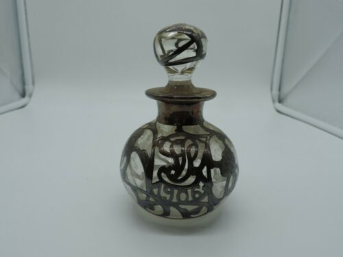 Art Nouveau "1906" perfume bottle silver overlay glass