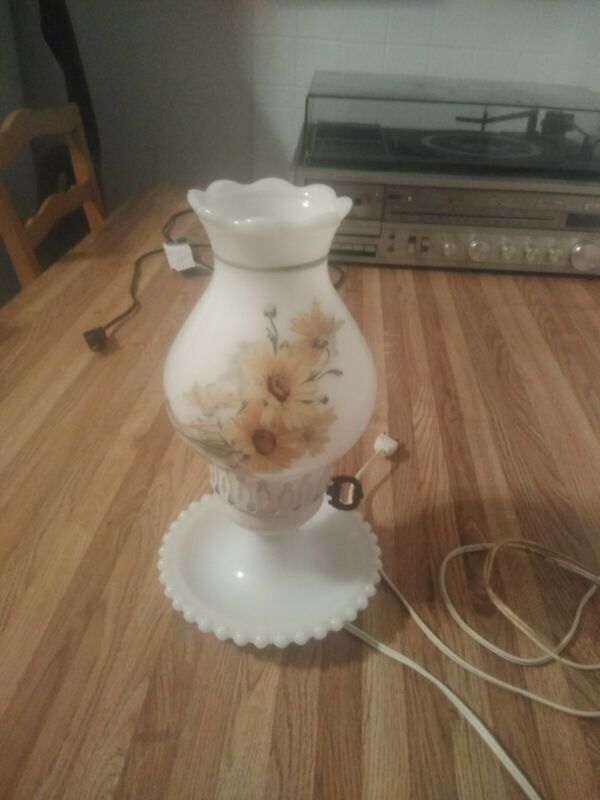Title (ebay affiliate link): Vintage White Hobnail Milk Glass Electric Hurricane Lamp With Ruffled Chimney