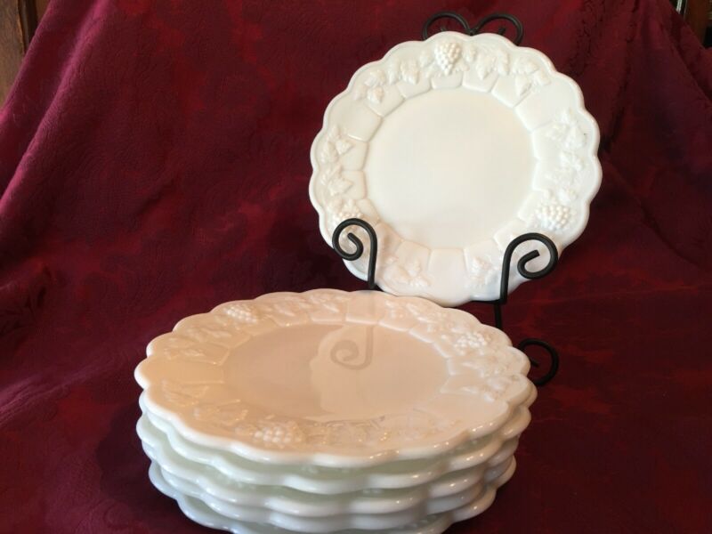 VINTAGE WESTMORELAND MILK GLASS PANELED GRAPE 8 1/2" SALAD LUNCH PLATES Set Of 6