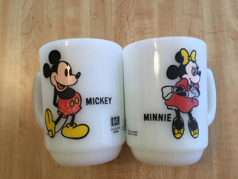 Title (ebay affiliate link): VINTAGE MUGS MICKY & MINNIE MOUSE WHITE MILK GLASS DISNEY PEPSI COLLECTOR SERIES