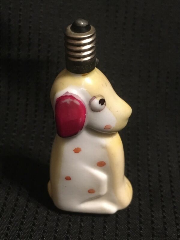 Antique Figural Christmas Lamp Light Bulb 15V Japan White Milk Glass Dog