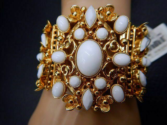 Estate Bracelet BADGLEY MISCHKA COUTURE NWT White Milk Glass Rhinestones