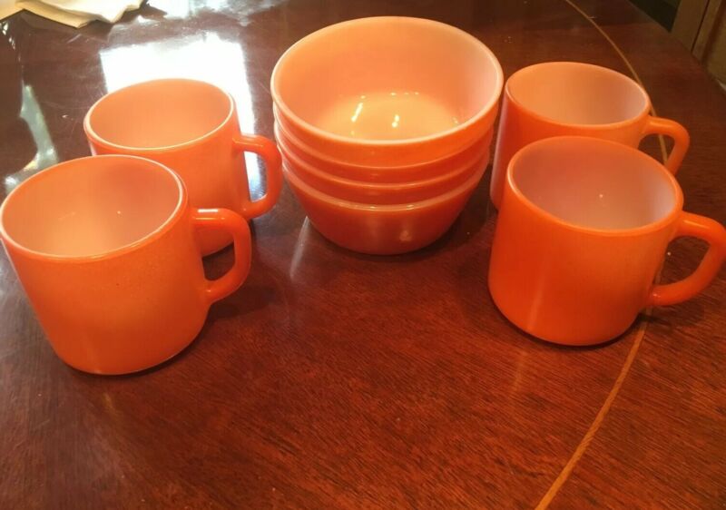 Title (ebay affiliate link): Vtg Federal F Orange 4 Milk Glass Coffee Cup Mugs And Bowls