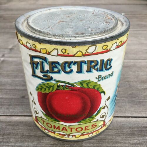 Title (ebay affiliate link): Vintage Antique General Store Tin Can Electric Brand Tomatoes Onley & Floyd