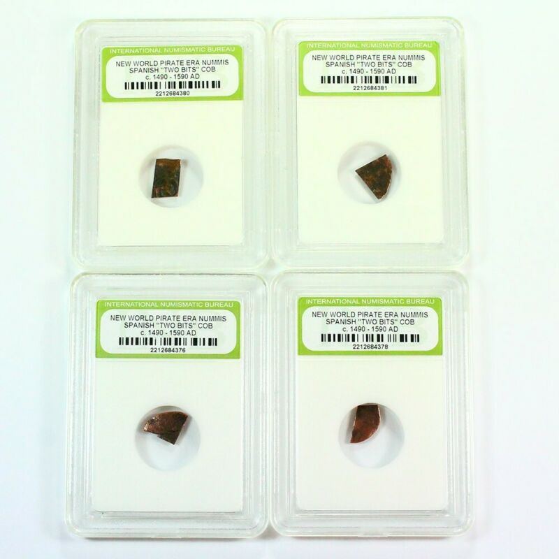 Lot of 4 "Two Bits" Early America Spanish Pirate Cob #6a