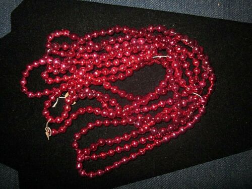 VTG FEATHER TREE RED MERCURY GLASS BEADED CHRISTMAS GARLAND 106 INCHES