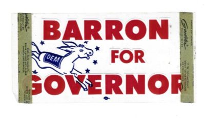 Charleston, WV, BARRON for GOVERNOR campaign decal 1960