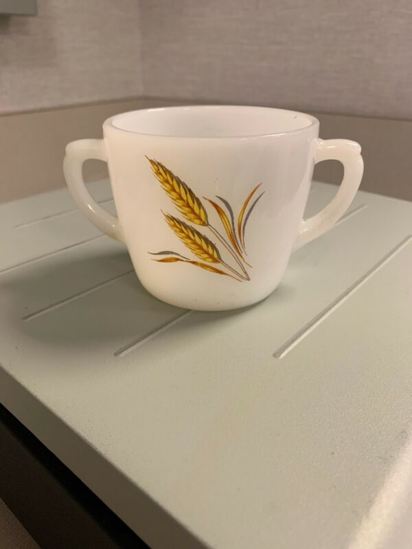 Title (ebay affiliate link): VINTAGE FIRE KING #17 WHEAT PATTERN MILK GLASS DOUBLE HANDLED SUGAR BOWL