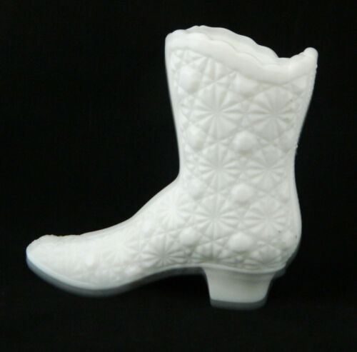 Vintage Fenton White Milk Glass Daisy & Button Boot Figurine Trinket Holder