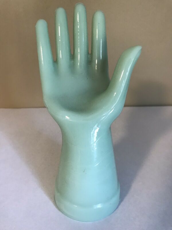 Title (ebay affiliate link): Vtg Fire King Style Jadeite Retro Green Milk Glass HAND Jewelry Ring Holder