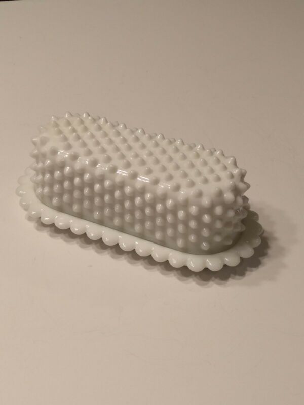 Title (ebay affiliate link): Vintage Fenton White Milk Glass Hobnail Covered Butter Dish Scalloped Base