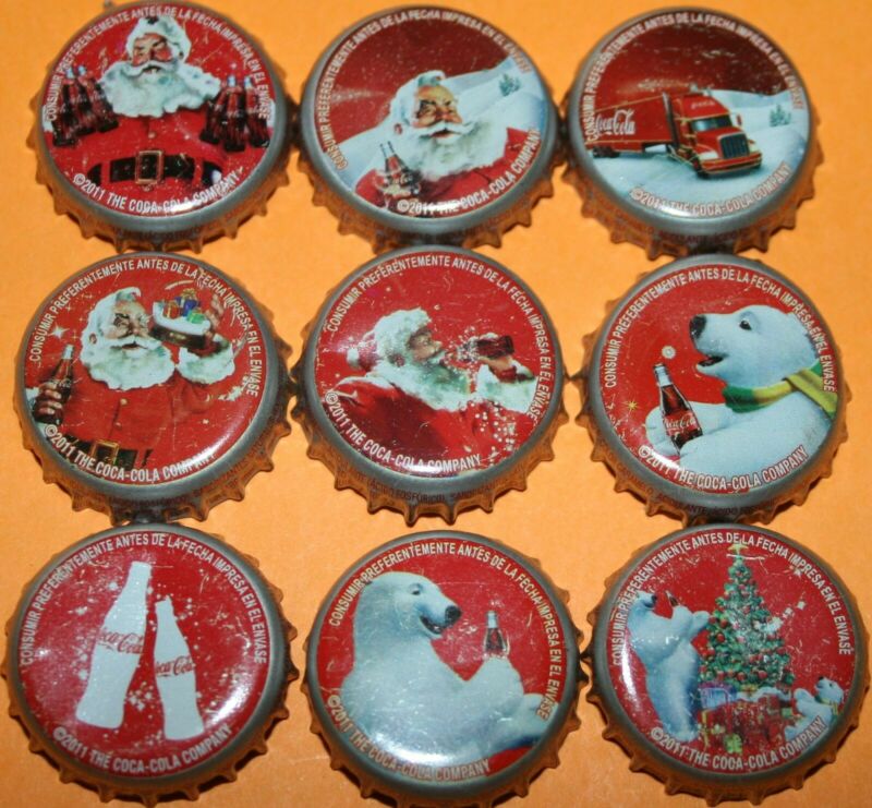 Title (ebay affiliate link): COLOMBIA Coca-Cola Christmas 2011 - FULL SET of 9 Used Bottle Caps