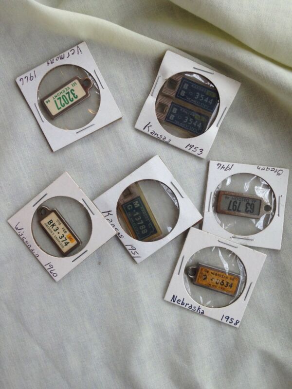 Title (ebay affiliate link): VNTG DAV Veterans Mini License Plate Key Chain ID Tag Lot Kansas Vermont Oregon