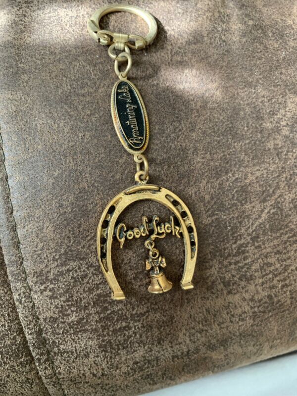 Vintage Souvenir Gold tone Pymatuning Lake Good Luck key chain/horse shoe & Bell