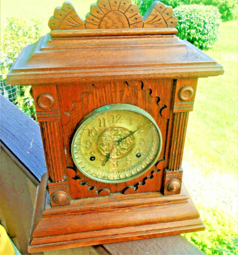ANTIQUE OAK CABINET INGRAHAM MANTLE SHELF CLOCK