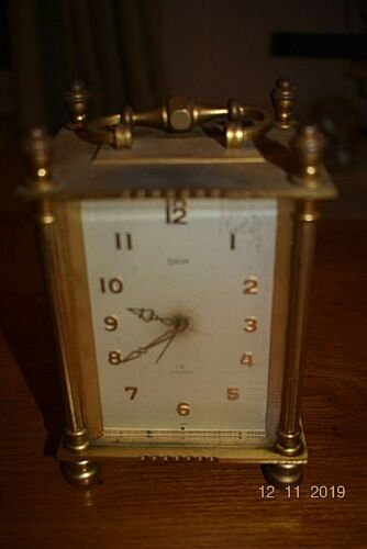 OLD SWISS CARRIAGE ALARM CLOCK 15 JEWEL