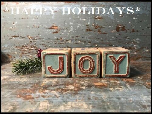 Title (ebay affiliate link): Childrens Antique Primitive Wood Blocks spell: "JOY" Vintage Farmhouse Christmas