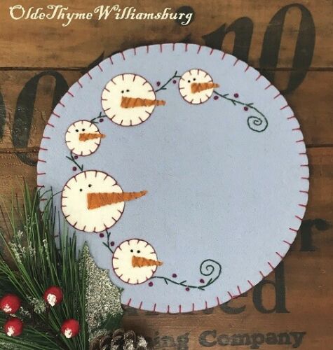 Primitive Stitchery CHRISTMAS Bittersweet Snowmen Penny Rug ~ WINTER Candle Mat