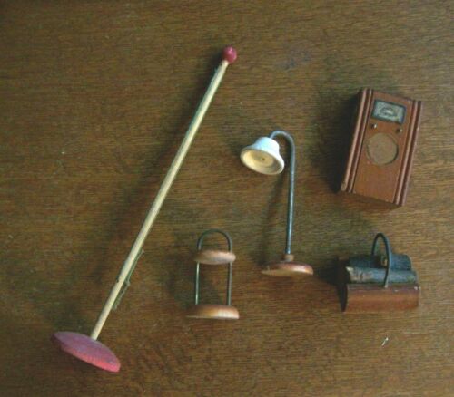 Title (ebay affiliate link): WOODEN DOLL HOUSE FURNITURE-VINTAGE-UNMARKED-FLAG POLE, RADIO, LAMP, SMOKING STA